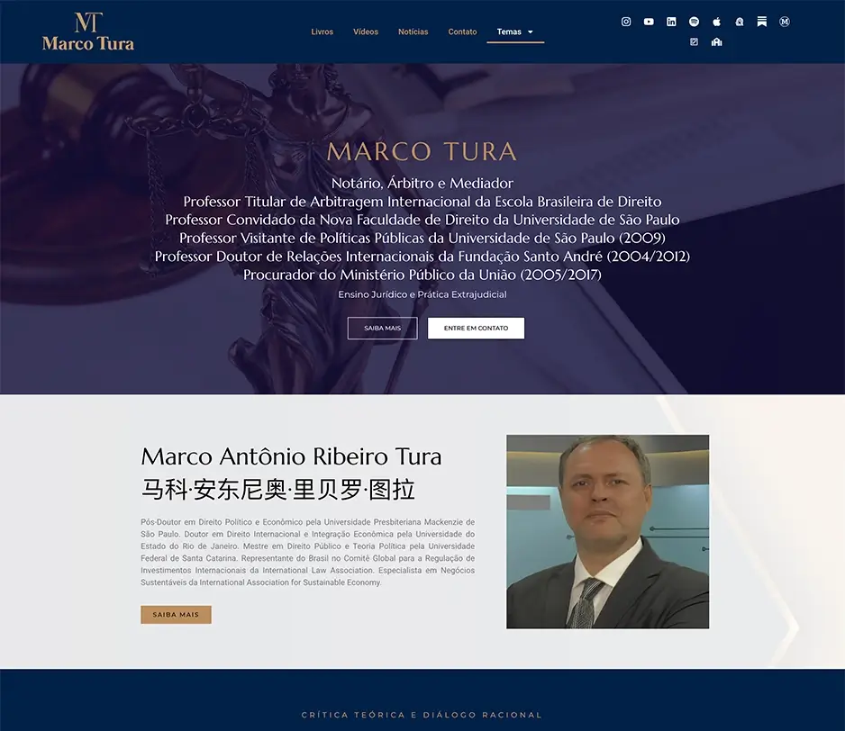 Site institucional criado para apresentar o trabalho de Marco Tura, unindo presença profissional, credibilidade e um blog com conteúdos estratégicos.