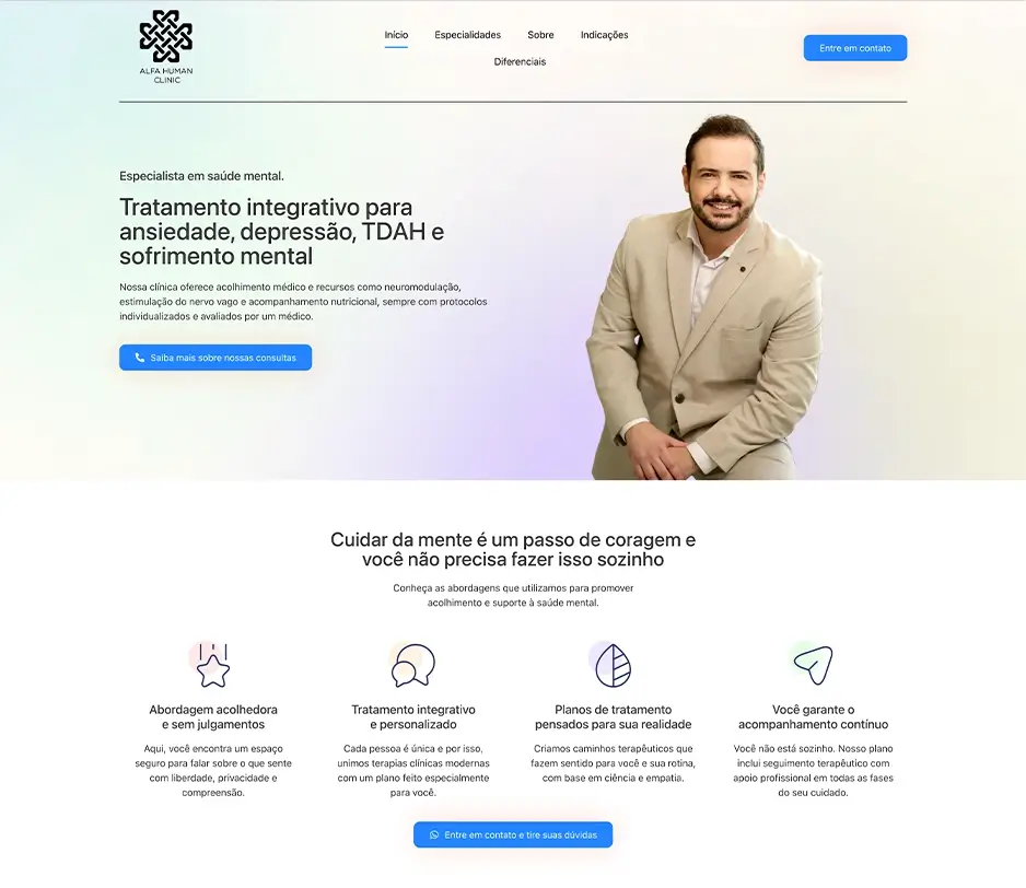 Landing page criada para o Dr. Mauro Prado, destacando sua atuação clínica com clareza e profissionalismo, além de facilitar o contato e o agendamento.
