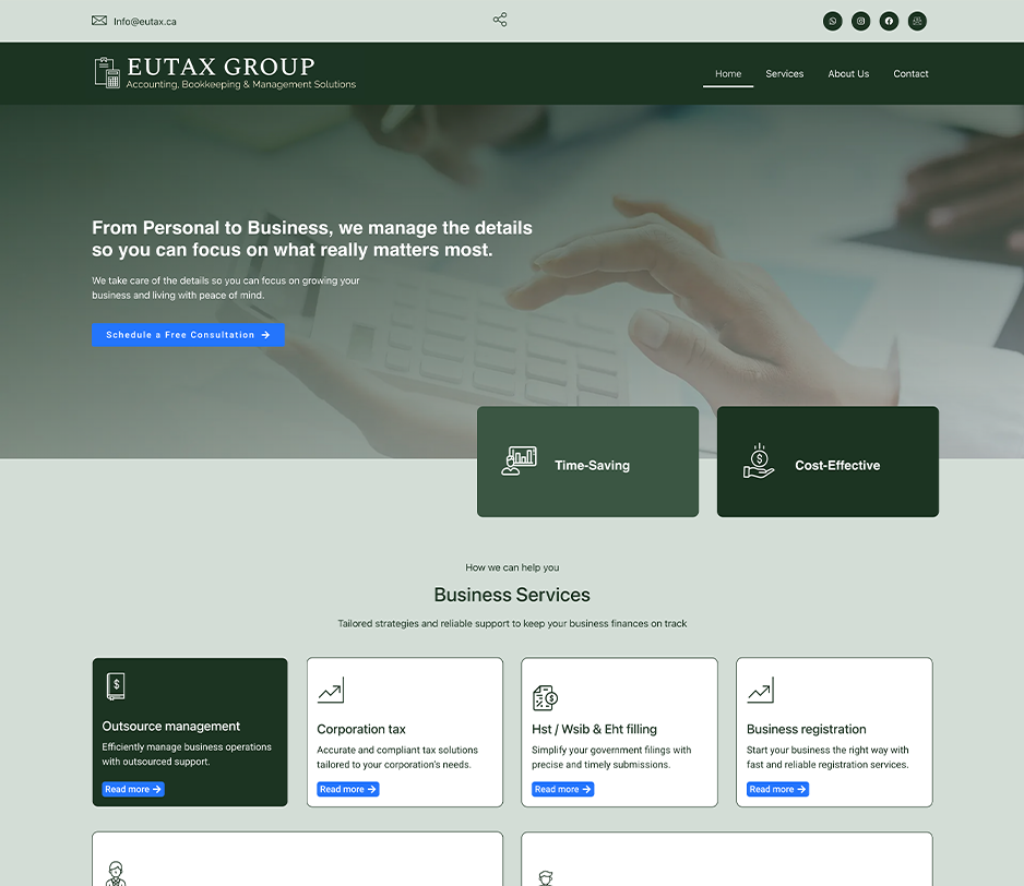 Site institucional desenvolvido para a Eutax Group, apresentando seus serviços contábeis de forma clara e profissional , com foco em credibilidade e experiência do usuário.